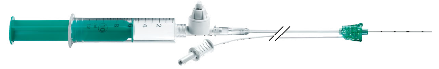 - Nasleduje kontrola polohy ihly (ultrazvuk, aspirácia) a prípadná korekcia